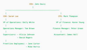Below is the organizational chart of XYZ Corporation. The chart shows the structure of the company and how various departments and roles are interconnected. The chart also highlights the reporting lines and key leadership positions within the organization.